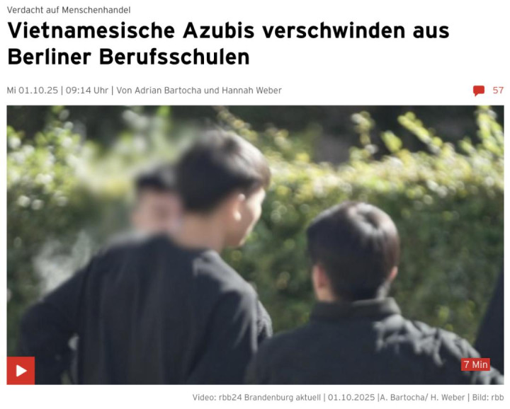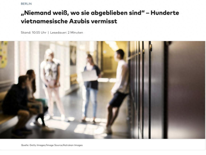 在柏林魏森泽的布里拉-萨瓦兰职业学校(Brillat-Savarin-Schule),约有5000名学生,其中700名来自越南。令人担忧的是,这700名越南学生中约三分之一已经神秘消失。